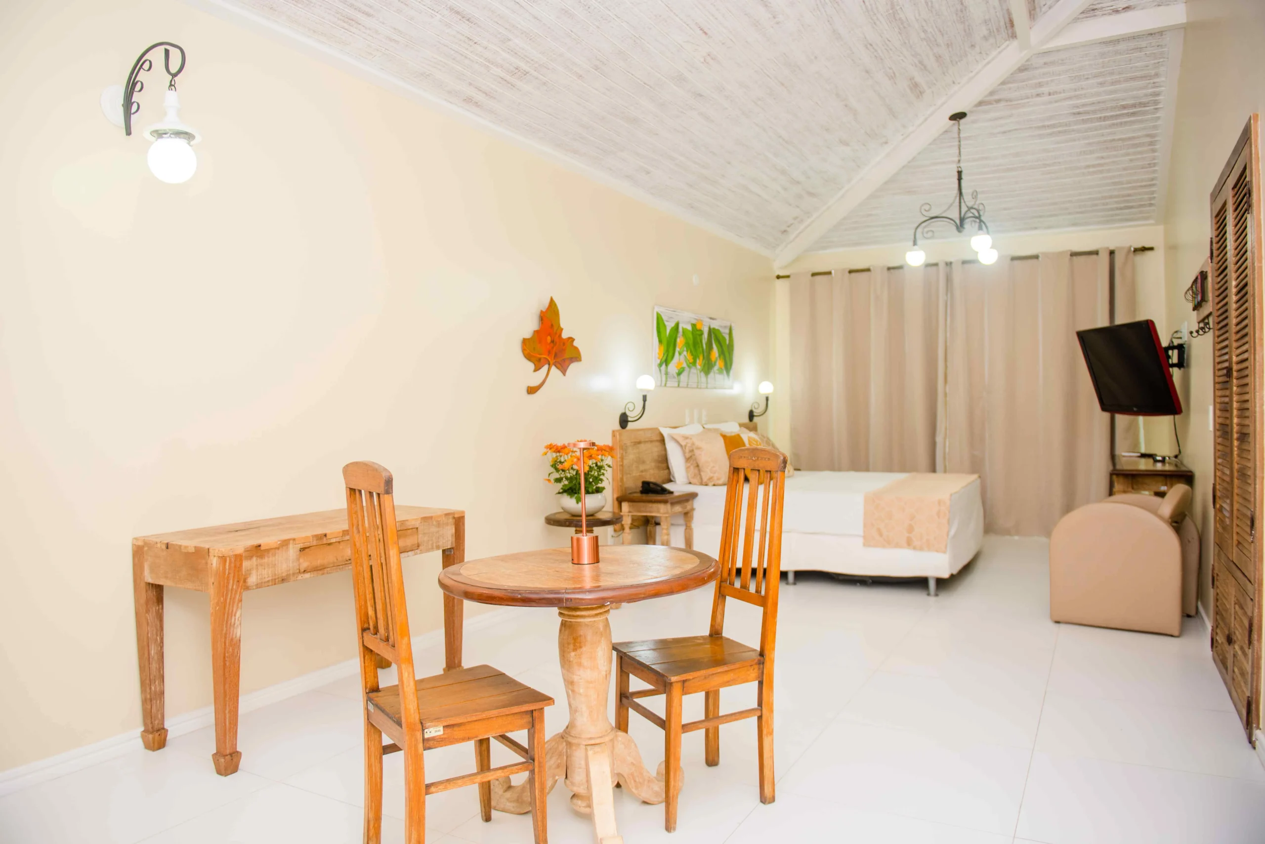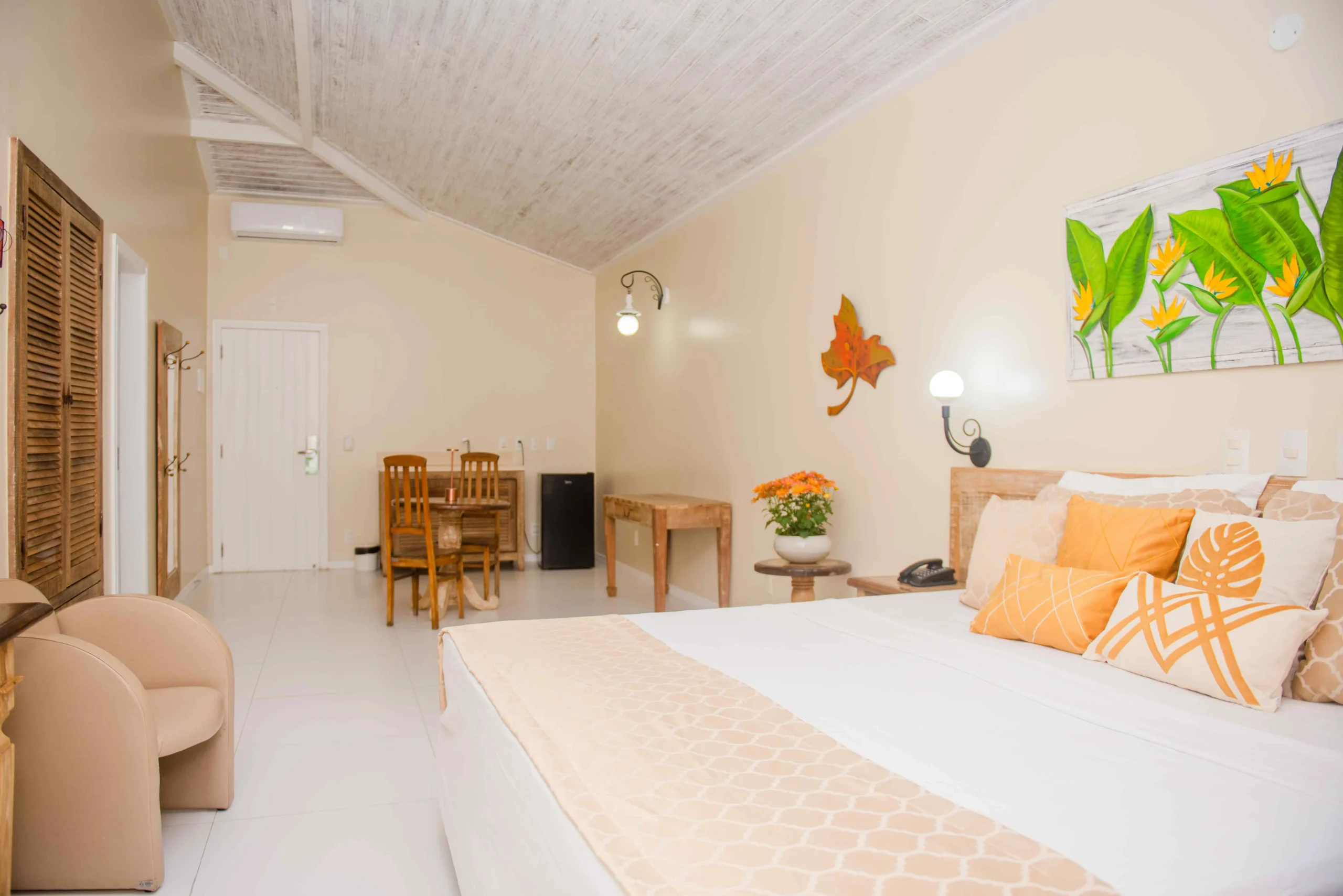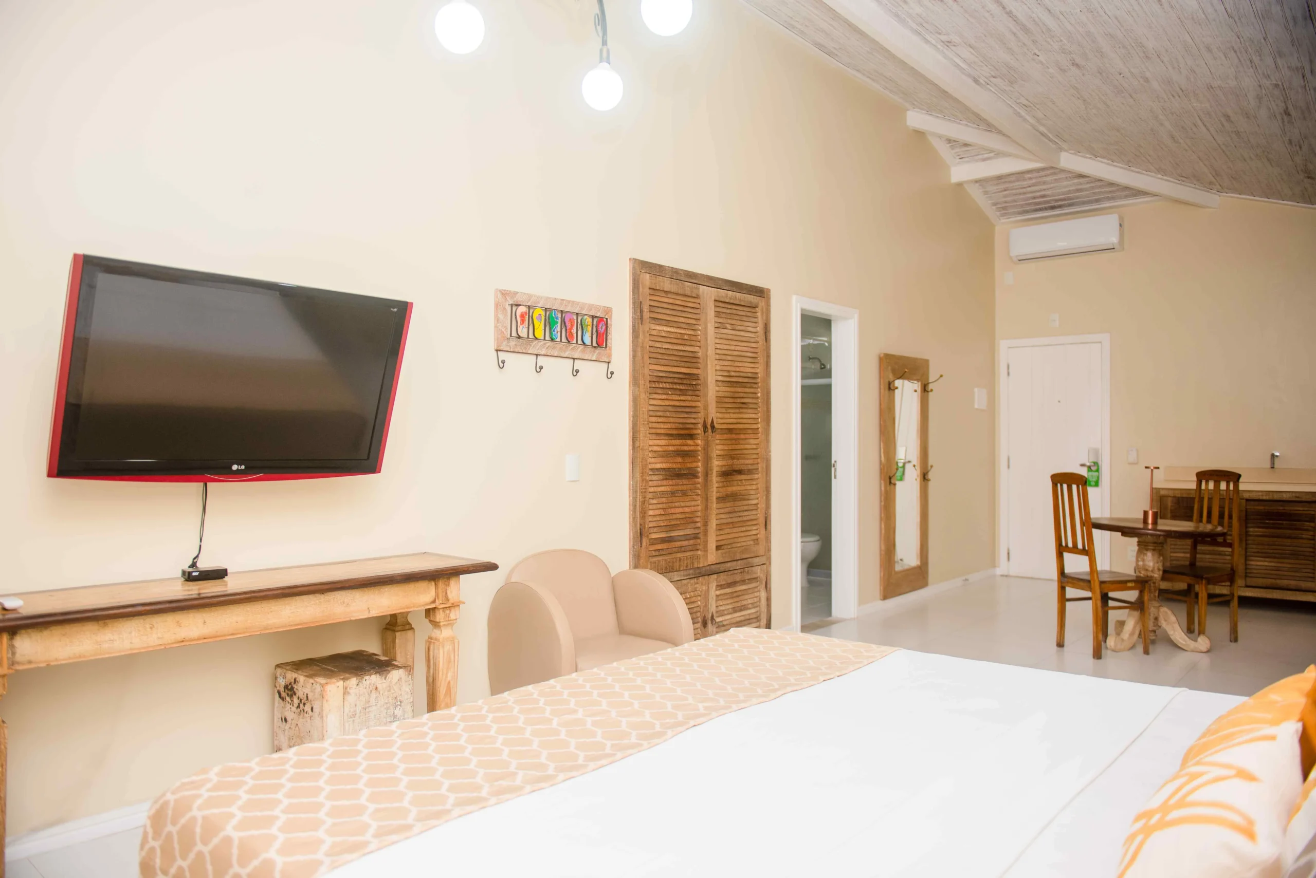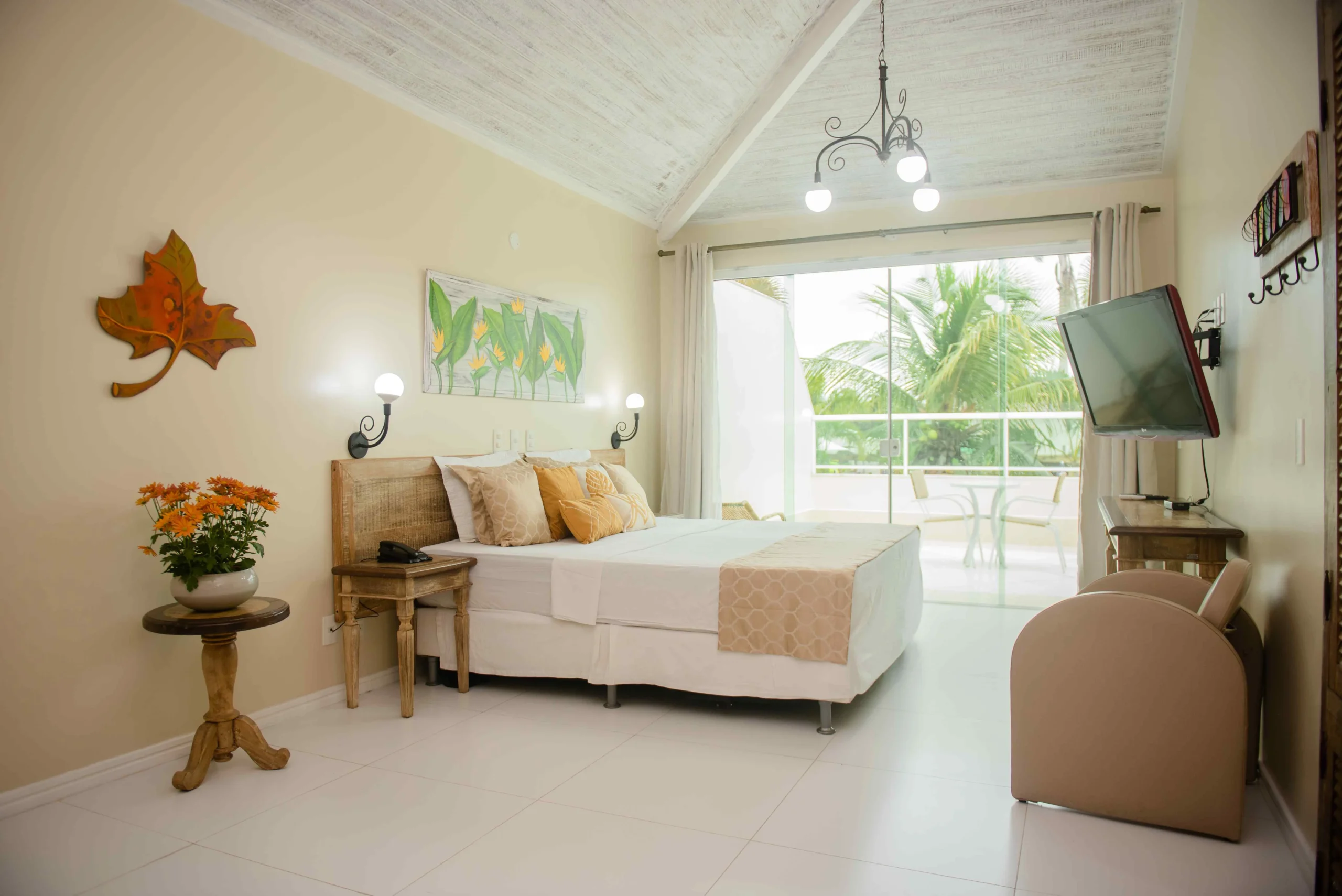 O quarto conta com varanda privativa, perfeita para relaxar e aproveitar o clima da região. Para seu entretenimento, dispõe de TV LCD de 42”, além de Wi-Fi gratuito para que você permaneça conectado sempre que desejar.