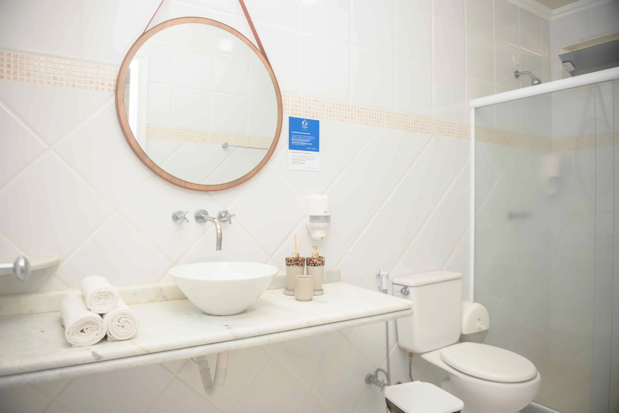 O ambiente é equipado com ar-condicionado de 18.000 BTUs, garantindo uma climatização agradável em qualquer época do ano. Para sua comodidade, o quarto também oferece cofre, frigobar e banheiro privativo com kit de banho, proporcionando praticidade e um toque extra de cuidado durante toda a sua estadia.